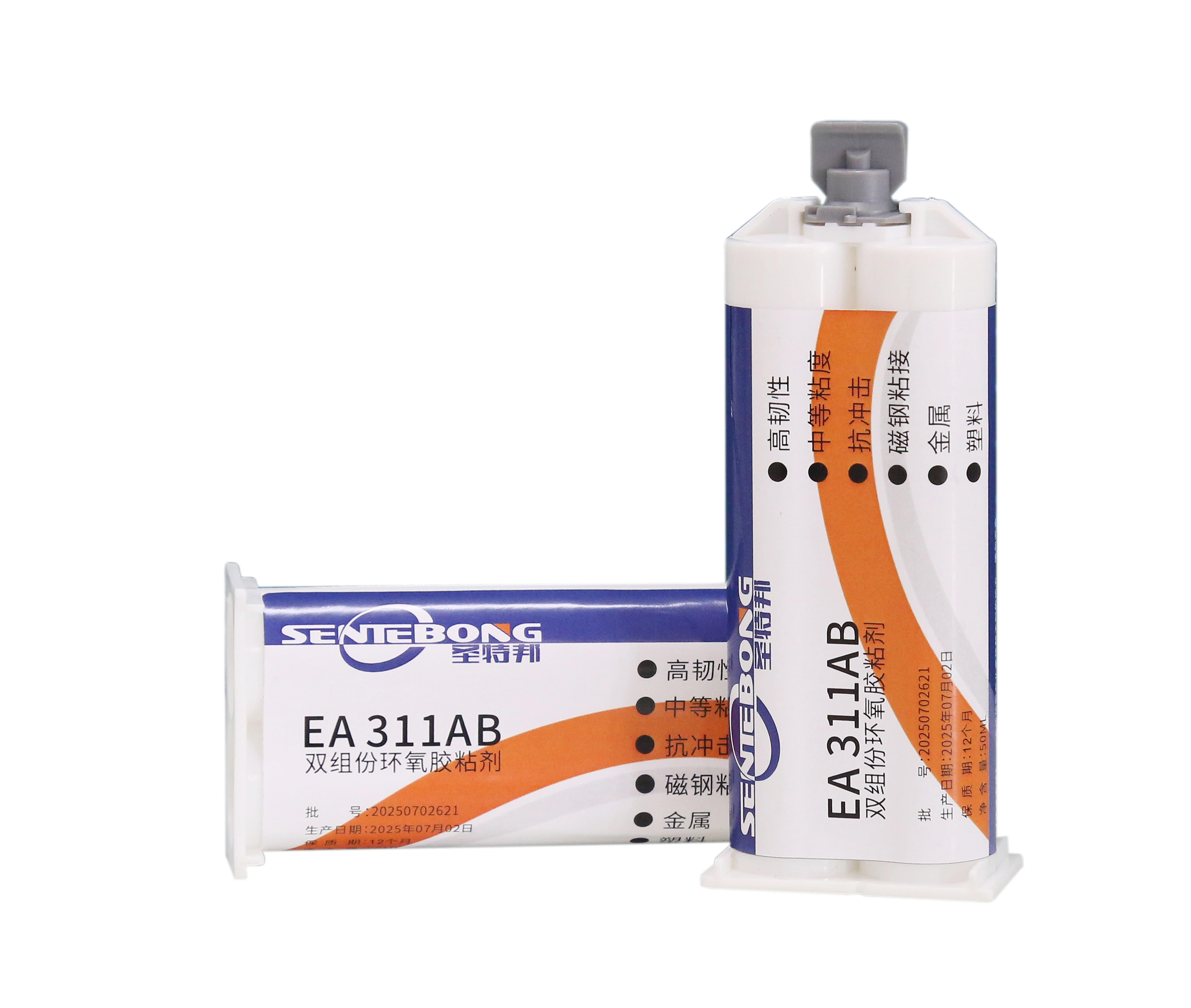 SENTEBONG EA 311AB 是一款有韧性、中等粘度、较短操作时间的工业级环氧胶黏剂。固化后具有高剥离力、高剪切强度、耐冲击、抗震动等特性,对大多数金属、塑料等材质有优异的粘接性能。