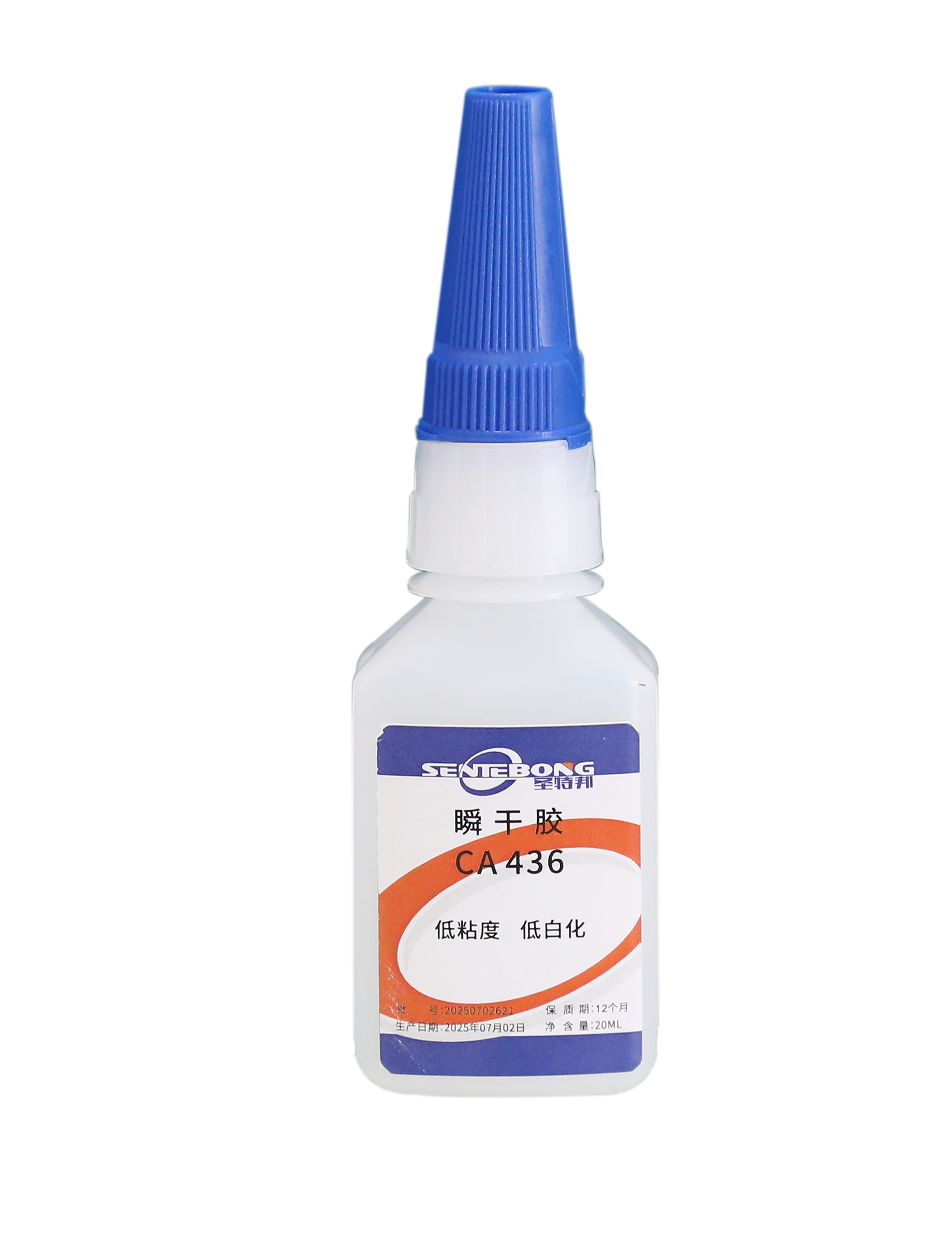 SENTEBONG CA 436 瞬干胶 产品选用高纯度的原料,通过增稠、增韧、和增强改性, 使产品的粘接性能得到了极大的提升。特有的增韧和高触变性, 使胶水在固化后形成更紧密的网状高分子体,胶层的耐老化性能更卓越,产品使用寿命更长。产品可以用于粘接绝大部分塑料、橡胶密封圈、弹性体材料。