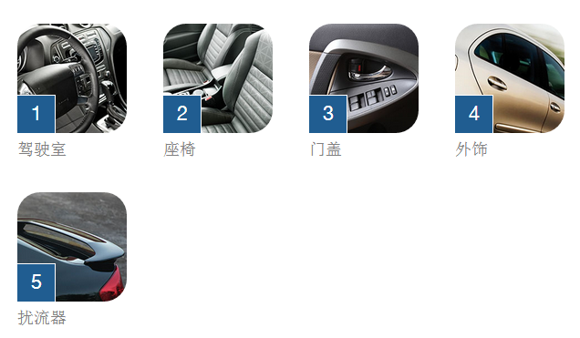 扰流器、门盖、侧翼、外饰、座椅、驾驶室