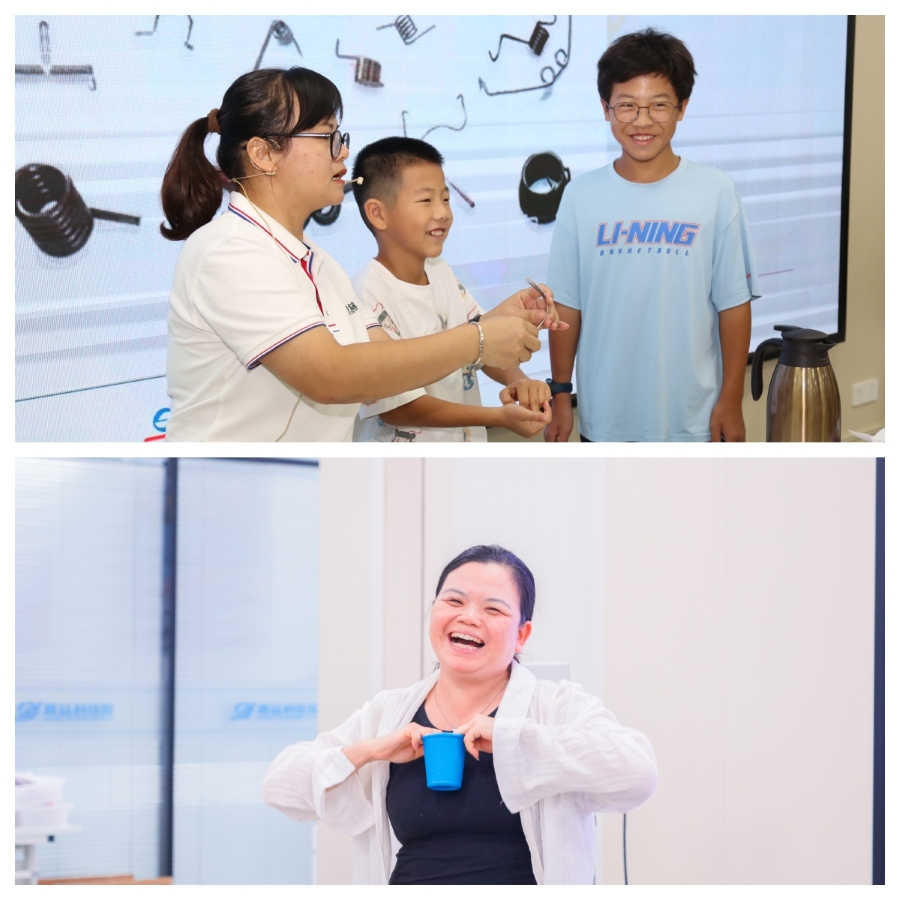 除了探索打卡,现场的新材料趣味互动体验环节更是将活动气氛推向了高潮。同学们纷纷参与到各种有趣的实验和游戏中,通过“会记忆的金属”、“砸不烂的鸡蛋”亲身体验,切身感受到了新材料的神奇力量。这些趣味互动不仅让同学们及家长在玩乐中学习到了科学知识,更激发了他们对科学探索的浓厚兴趣。