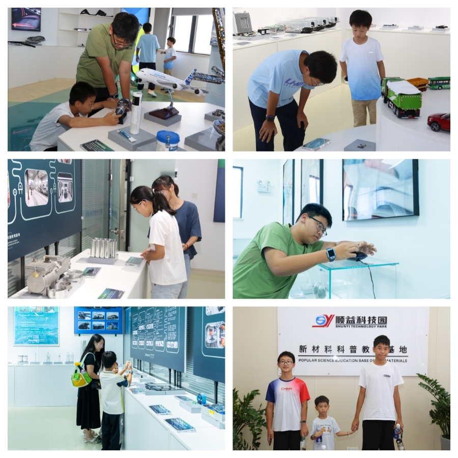 活动伊始,青少年和家长们一同走进顺益科技园新材料科普教育基地,开启了一场别开生面的探索打卡之旅。基地内,丰富多样的现代新材料展品琳琅满目,从日常用品到高科技产品,无一不展示着新材料为生活带来的巨大便利。