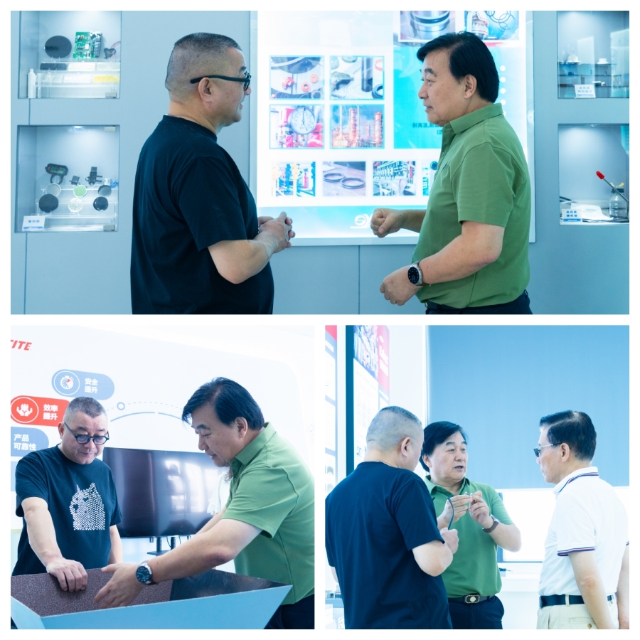 来访人员先后参观了表面处理实验中心、喷涂实验中心、实验检测中心、台架试验中心、德国汉高乐泰体验中心、Krytox高性能润滑剂应用展示厅、特种功能涂层材料应用展示厅、高性能弹性体及塑料应用展示厅、新能源汽车新材料应用展示厅、顺益科技园新材料科普教育基地、新材料新应用实训基地、工业领域耐磨修复中心、自润滑材料应用测试中心、工业集成服务展示体验中心等多个重要区域。了解了顺益科技园在设备维护、节能增效等工业服务场景中的新材料创新实践,并给予高度评价。